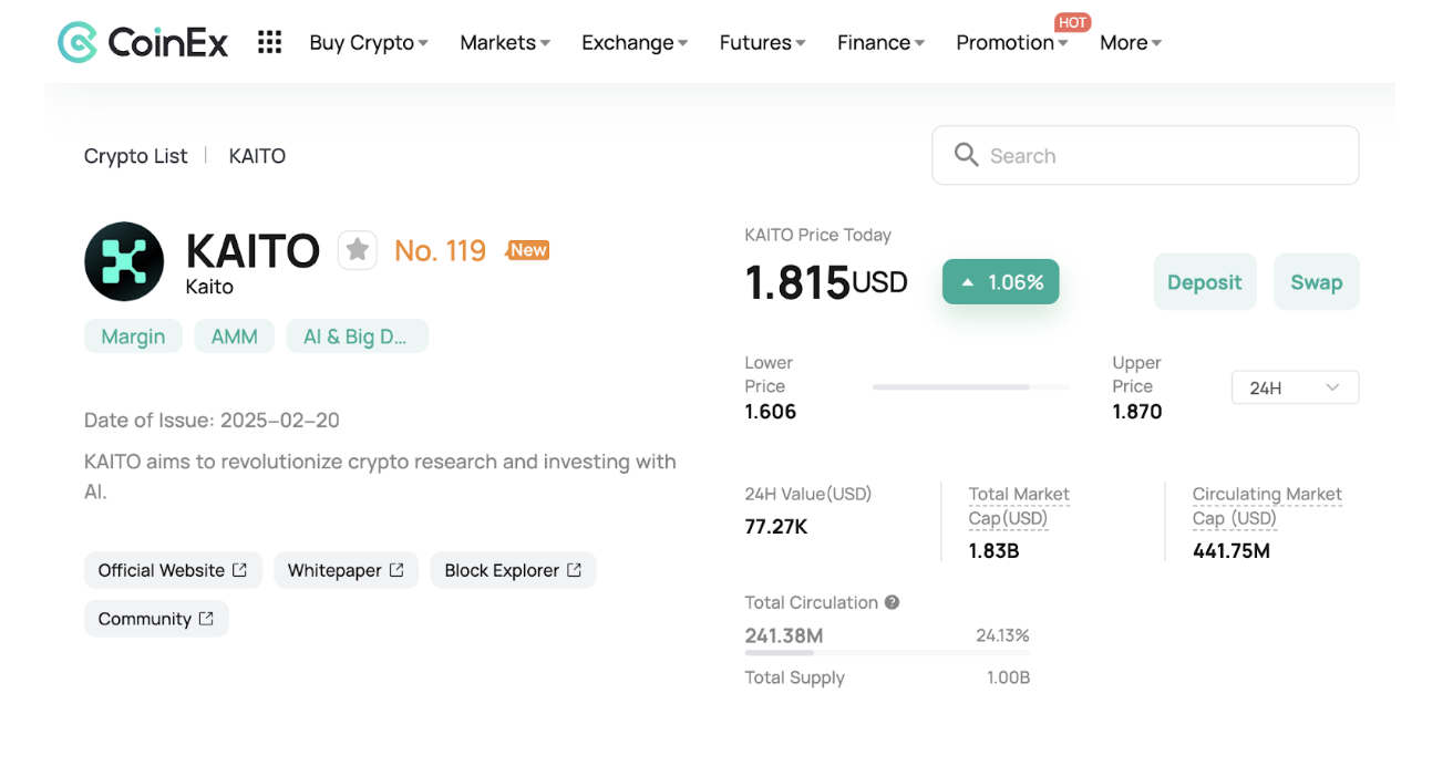 KAITO는 AI 기반 암호화폐 검색 엔진으로, 투자자들에게 보다 정확하고 빠른 정보를 제공하는 블록체인 플랫폼입니다.
